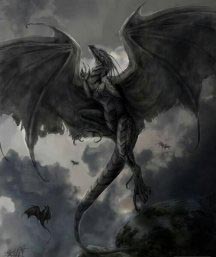 Перерождение в тень. Превращение дракона из обычного в теневого происходит за нескольких лет, в течение которых чешуйки постепенно утрачивают свой блеск и выцветают до тёмных, угольных оттенков. Его кожистые крылья становятся полупрозрачными, его глаза превращаются в омуты, переливающиеся серым. Теневые драконы считают солнечный свет отвратительным; при ярком свете они слабее, чем во тьме, а в темноте они принимают облик, более похожий на их былую внешность.