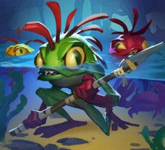 Мультиатака. Куо-тоа совершает две атаки: одну укусом и одну клешнепосохом.