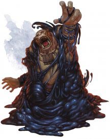 Едкое тело. Существо, касающееся слизи или попадающее по ней рукопашной атакой, находясь в пределах 5 футов от нее, получает урон кислотой 4 (1к8). Немагическое оружие, изготовленное из металла или дерева, попадающее по слизи, начинает разъедаться. После причинения урона оружие получает постоянный накопительный штраф -1 к броскам урона. Если этот штраф дойдет до -5, оружие будет уничтожено. Немагические боеприпасы, изготовленные из металла или дерева, попадающие по слизи, уничтожаются после причинения урона.