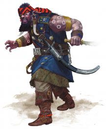 Скимитар. Рукопашная атака оружием: +5 к попаданию, досягаемость 5 футов, одна цель. Попадание: Рубящий урон 6 (1к6 + 3).