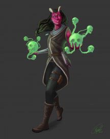 - 1/день каждое: огненные ладони [burning hands], маскировка [disguise self], доспехи мага [mage armor].