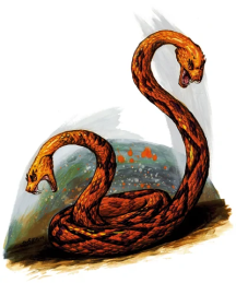 Две головы. Амфисбена совершает с преимуществом спасброски от ослепления, очарования, глухоты, испуга, ошеломления или бессознательности.