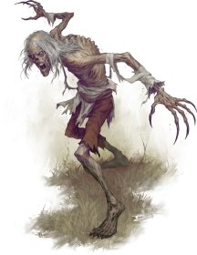 Иссохшийся зомби. Пустоши Восточного Винандира сохранили много проклятий и пороков со времен бедствия, худшие из которых извращают святость смерти. Одно из таких проклятий проявляется в виде ужасного бродячего тумана, который притягивает трупы павших, чтобы подняться в виде иссохшегося зомби - стойкой нежити с пугающей скоростью и кровожадностью. Кроме того, некоторые из самых отвратительных демонов, которые ходят по этим изуродованным землям, питаются жизненной силой живых, оставляя за собой эту ужасную нежить.