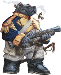 Гиффа легко заметить в комнате: рост в семь футов, бегемотоподобная голова, безвкусная военная одежда с блестящими пистолетами и мушкетами. Эти космические наёмники славятся своей боевой подготовкой и любовью к взрывчатым веществам.