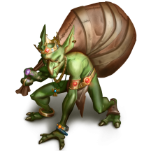 Лутгоблин ходит с мешком в котором всегда, что-то есть магическое, с чем он не может растаться, и некоторое количество золота. Лутгоблину нравиться звон монет.
