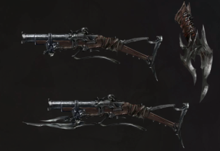 Хитрое оружие. Бонусным действием вы можете переключаться между трансформированным и нетрансформированным состояниями этого оружия. В своем нетрансформированном состоянии крюкострел представляет собой два одноручных оружия, соединенных короткой цепью; серп и мушкетон. В своем трансформированном состоянии оружие представляет собой одноручное оружие; мушкетон с насадкой на лезвие, который может функционировать как боевой топор.