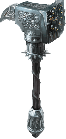Созданный из цельного куска обсидиана, этот боевой молот Торога гудит магической энергией и украшен изображениями лиц, кричащих от боли.