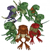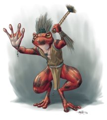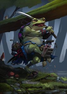 Грунги – это агрессивные жабоподобные гуманоиды, которых можно встретить в дождливых лесах и тропических джунглях. Они яростно защищают территорию и мнят себя превосходящими остальных существ.