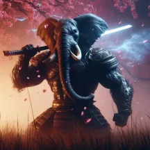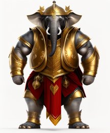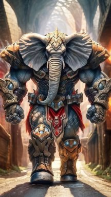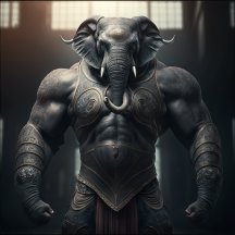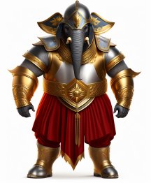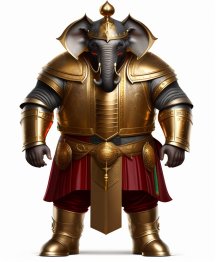В одной руке оружие, в другой щит, а хоботом держишь врага